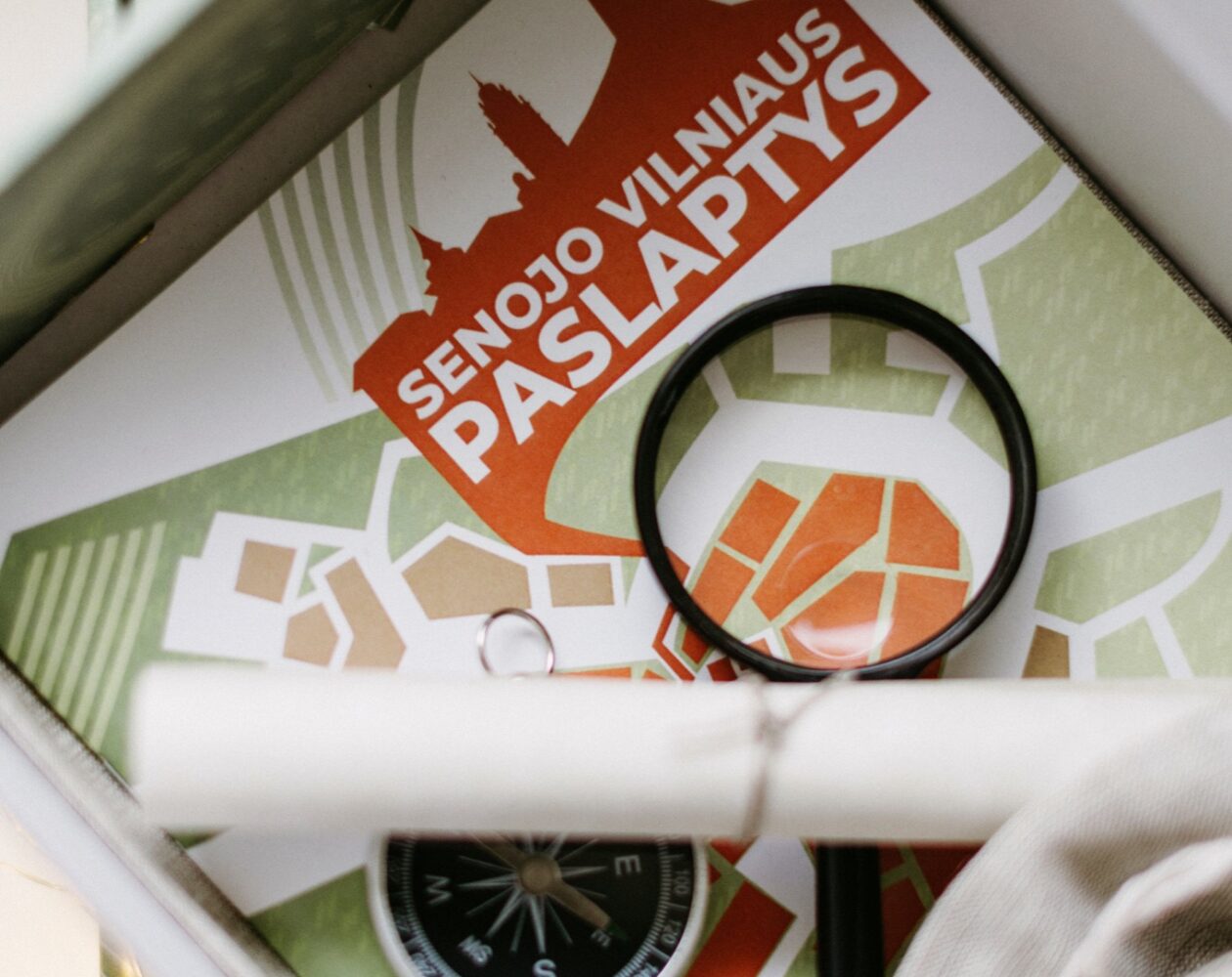 - Orientacinio žaidimo „Senojo Vilniaus paslaptys“ knygelė. Joje – nuorodos į 10 skirtingų sostinės senamiesčiui reikšmingų vietų, trumpa žaisminga informacija apie Vilniaus istoriją ir skirtingos sumanumo, pastabumo, aktyvaus veiksmo užduotys.